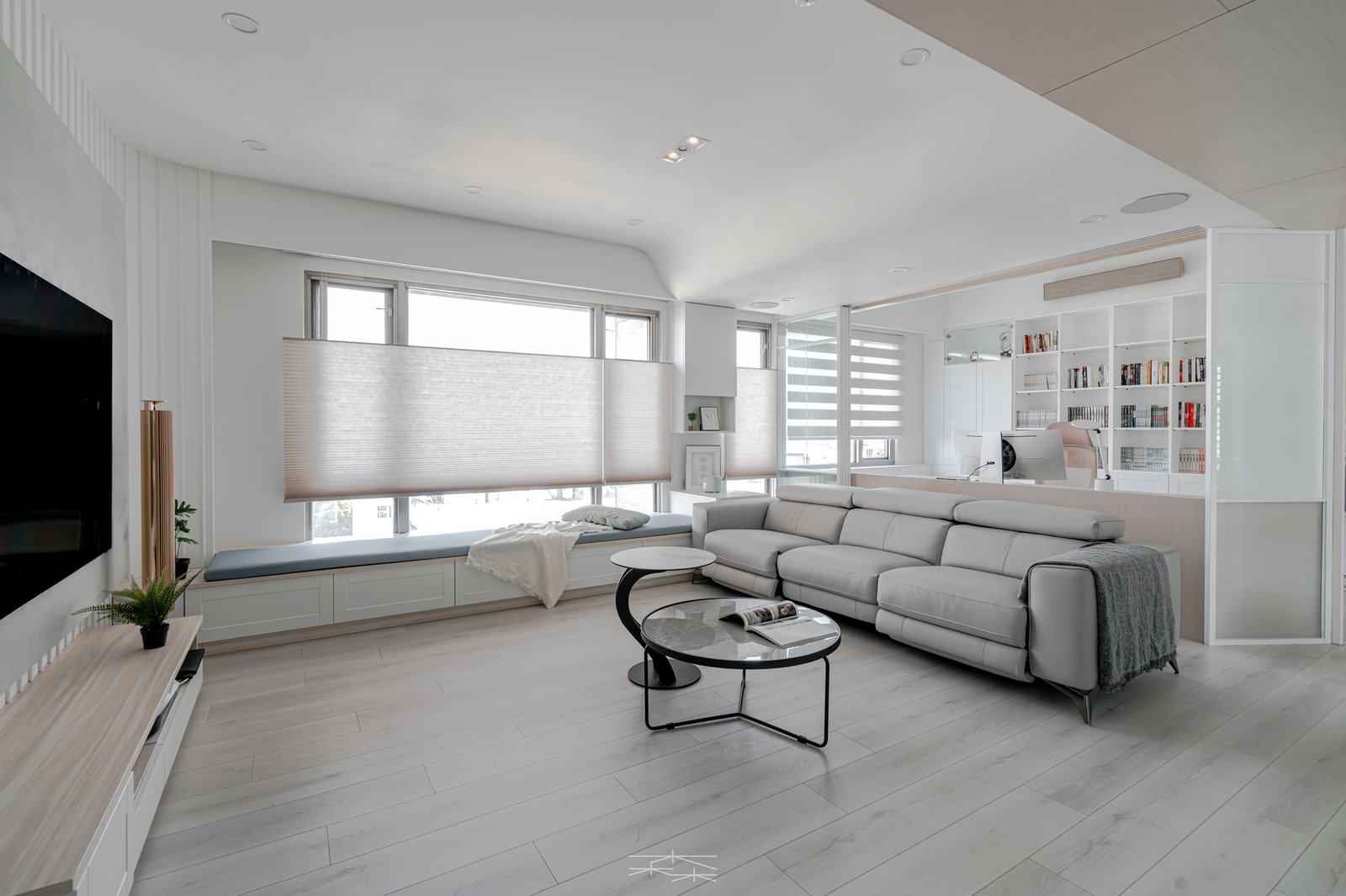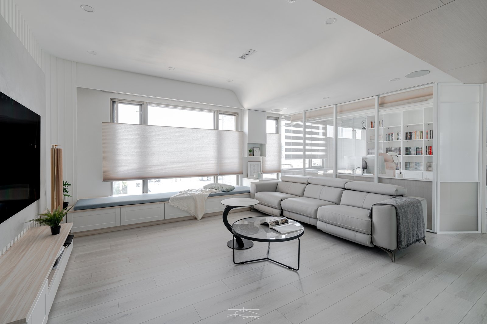 從客廳將臥榻一路延伸至書房,開放的空間減少了讓人壓迫的實牆,延展了空間的視覺,也開拓每個空間的採光,用溫和·自然的元素,讓每次回家都是一種幸福。